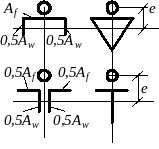 | Примечания: 1. Для типов сечения 5–7 при подсчете значений Af /Aw площадь вертикальных элементов полок не следует учитывать. 2. Для типов сечений 6–7 значения h5 следует принимать равными значениям h для типа 5 при тех же значениях Af /Aw. | ||||||