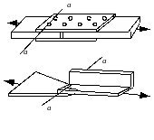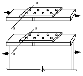 | 12 | | Стыковой шов, выполненный на подкладном листе; нагрузка перпендикулярна сварному шву | 4 |