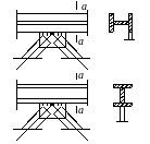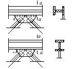 | Примечание. При наличии закреплений сжатого пояса в горизонтальной плоскости на конце или по длине консоли коэффициенты y следует определять как для консоли без закреплений, кроме случая сосредоточенной нагрузки, приложенной к верхнему поясу на конце консоли, при котором y = 1,75y1 (значение y1 следует принимать согласно примеч. табл. 77). | |||