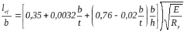 | Обозначения, принятые в таблице 8*: b и t – соответственно ширина и толщина сжатого пояса; h – расстояние (высота) между осями поясных листов. Примечания: 1. Для балок с поясными соединениями на высокопрочных болтах значения lef /b, получаемые по формулам таблицы 8* следует умножать на коэффициент 1,2. 2. Для балок с отношением b/t < 15 в формулах таблицы 8* следует принимать b/t = 15. | |