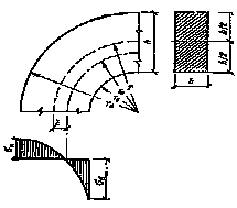 Рис. 16. Расчетная схема к определению напряжений в криволинейной части гнуто-клееных рам