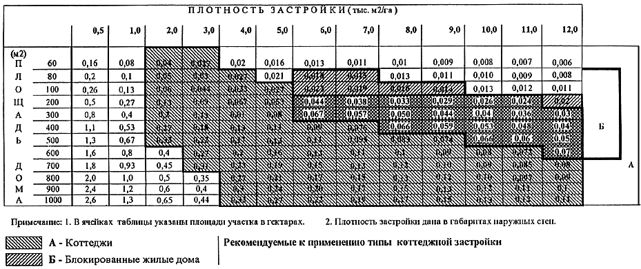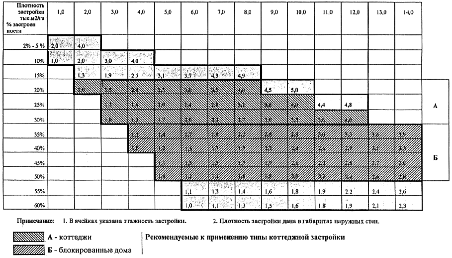 Расчетные показатели средней этажности коттеджной застройки