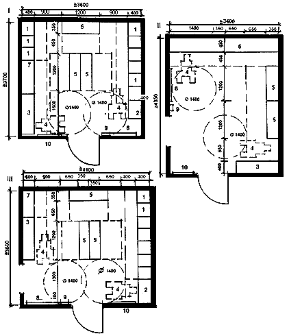 Рис. 4.5. Примеры планировки раздевальных с учетом потребности инвалидов-колясочников