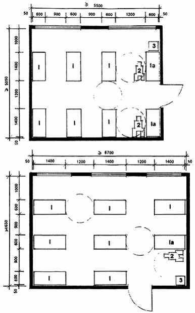 Рис. 4.1. Примеры планировки спальных комнат для дошкольников