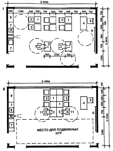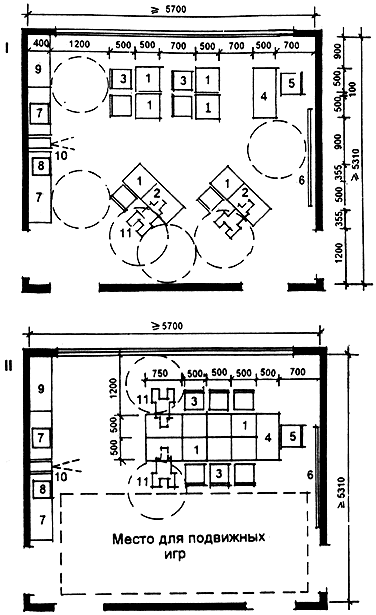 II - Расстановка оборудования при использовании помещения как столовой и игровой