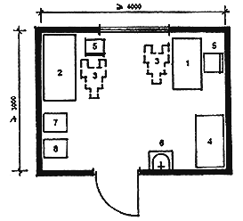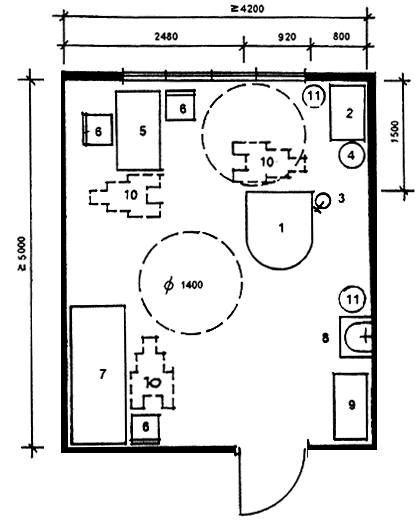 | 5. Стол врача | 11. Бачок для мусора |