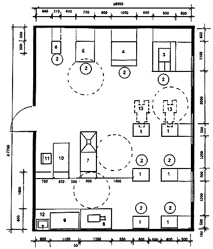 - необходимость учета технологических требований к размещению оборудования (расстояние между приборами, между приборами и стенами и т.п.);