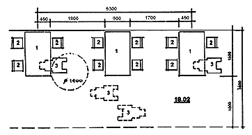Обеденное время, как правило, принимается в учреждениях малой вместимости 1,5-2 часа (т.е. 3-4 посадки); в больших учреждений - 2-2,5 (т.е. 4-5 посадок). Разделив рассчитанное по формуле число питающихся на число посадок, получаем расчетную вместимость столовой или буфета персонала.