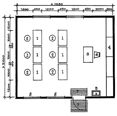 | 6. Стол преподавателя | 13. Остекленная стена |