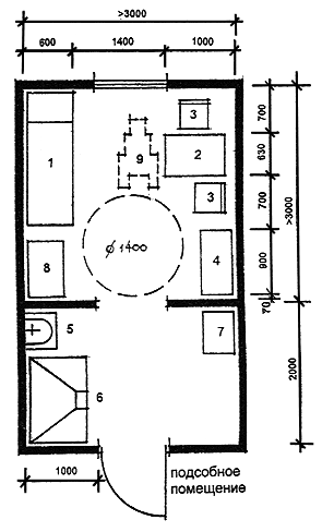 Рис. 6.12. Фрагмент размещения оборудования в кабинете для массажа