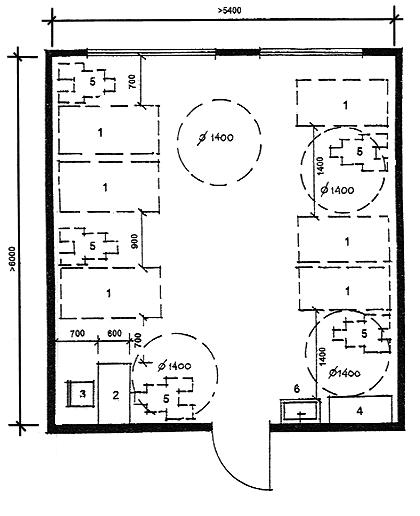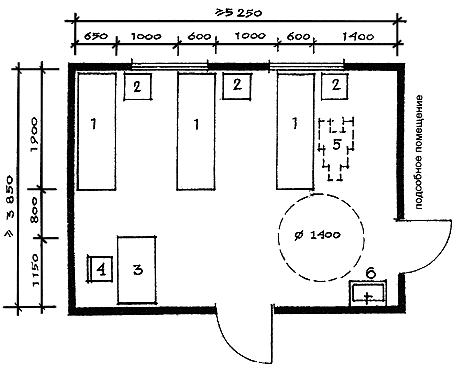 Рис. 6.23. Зал для индивидуальных занятий на 1-3 учащихся (для детей с