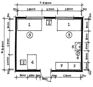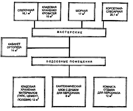 Рис. 6.28. Взаимосвязь помещений ортопедического блока (в школах-интернатах