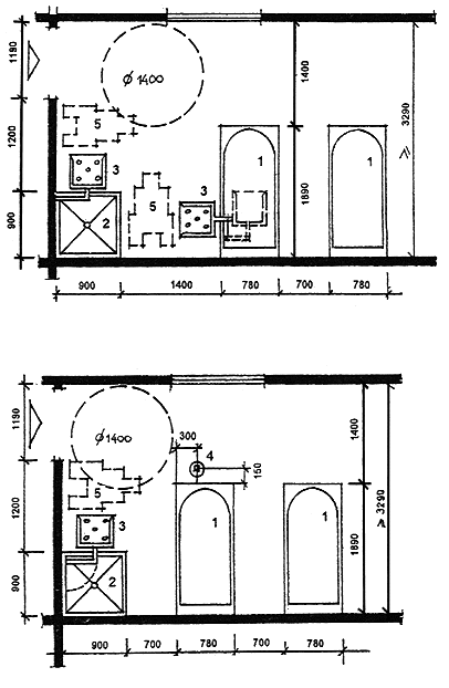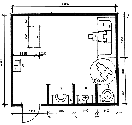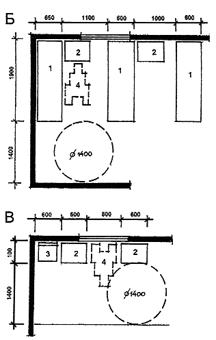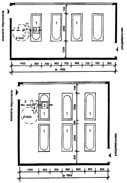 Рис. 6.27. Примеры планировки кабинета ЛФК с раздевальной