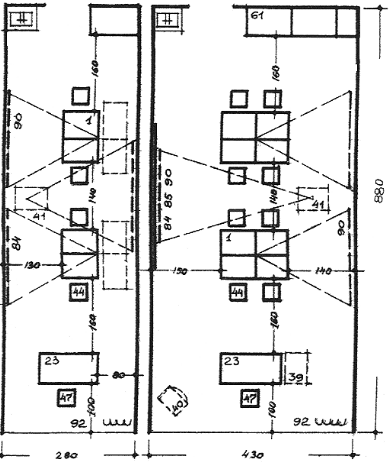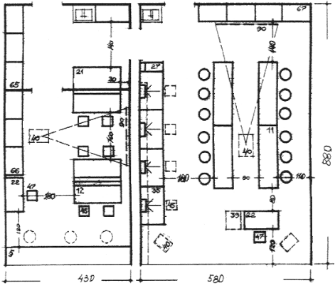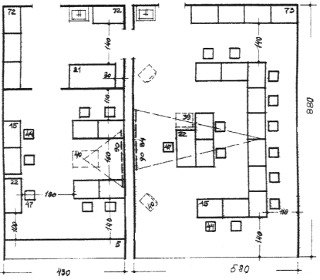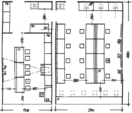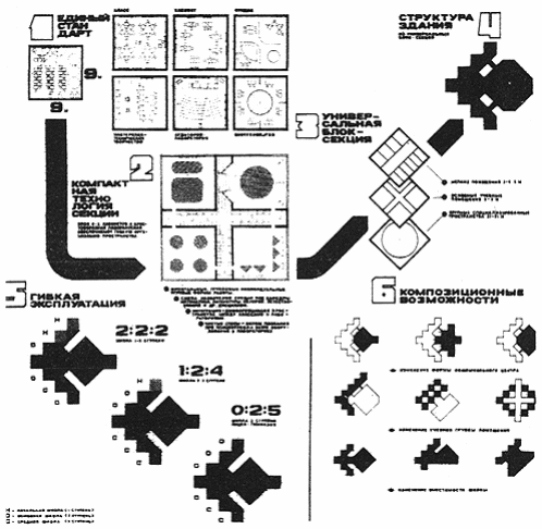 Рисунок 7. СИСТЕМА УНИВЕРСАЛЬНЫХ ПОМЕЩЕНИЙ, ОСНОВАННАЯ НА ПЛАНИРОВОЧНОМ МОДУЛЕ 9 М