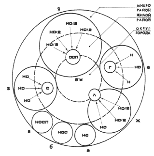 д - средняя школа II и III ступеней с профильным обучением, обслуживающая группу начальных и основных школ
