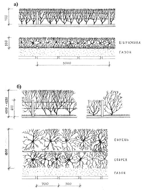 Рис. 19 Посадка кустарников и организация живой изгороди