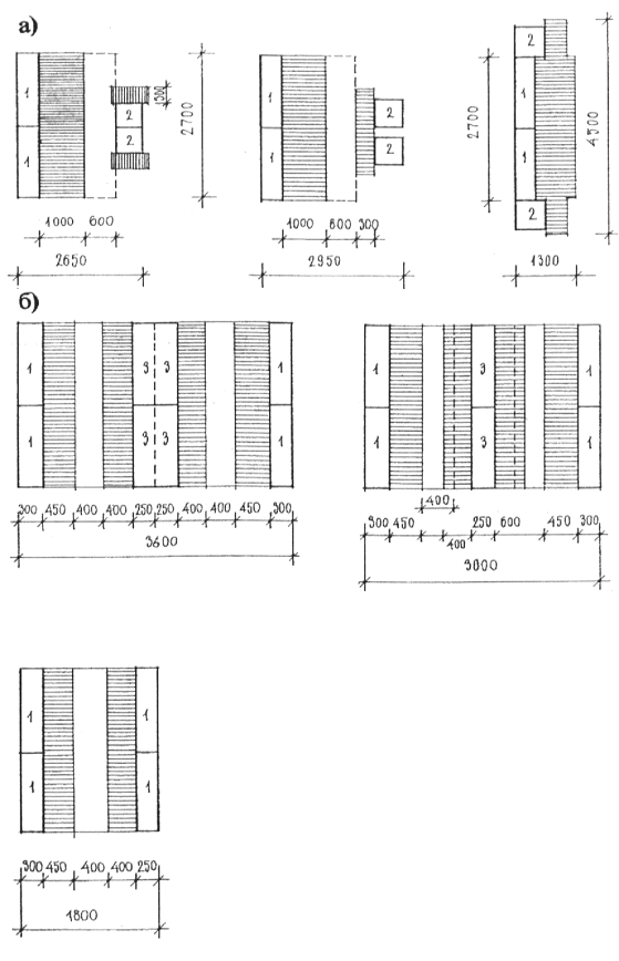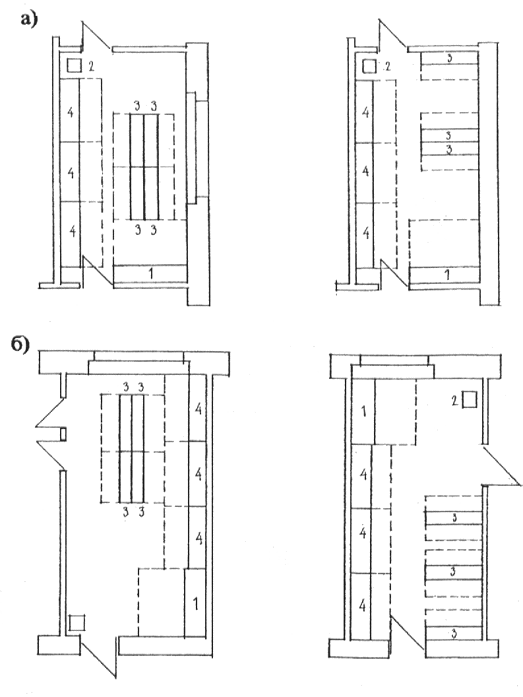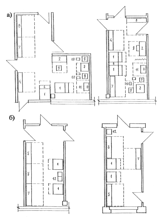а - размещение индивидуальных кроваток; б - размещение встроенных откидных кроваток