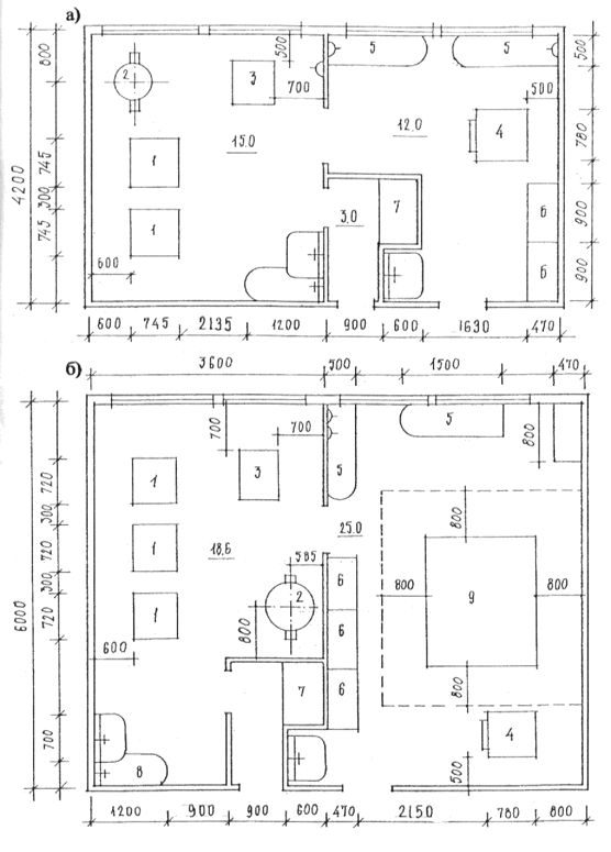 Рис. 42 Примеры планировки медицинских помещений в ДУ: