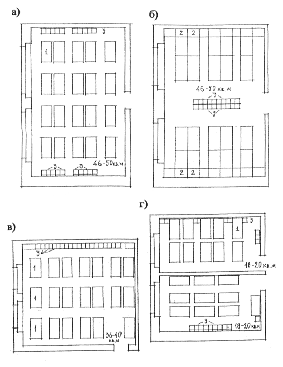 Рис. 24 Примеры размещения мебели в раздевальных: