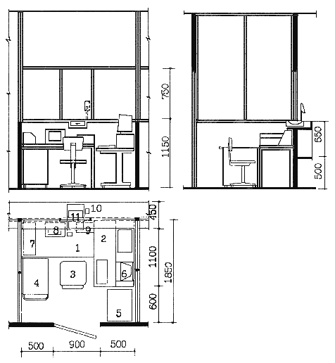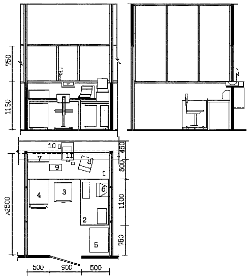 | 3 - стул рабочий подъемно-поворотный | 8 - переговорное устройство |