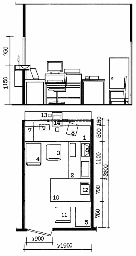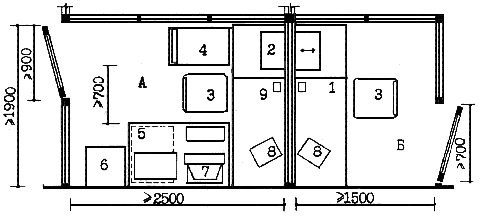| 3 - стол рабочий | 9 - бронедверь |