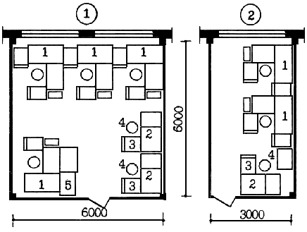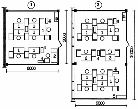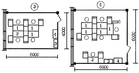 Рабочие места кассиров - пересчетчиков приведены на рис. 4.12-4.17. Примеры планировки касс пересчета банкнот и монет с различной численностью сотрудников приведены на рис. 4.18-4.22.
