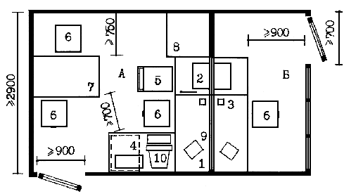| Б - кабина для клиентов | 6 - стул рабочий подъемно-поворотный |