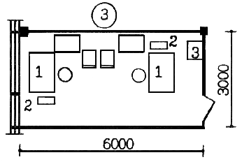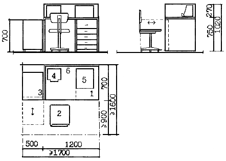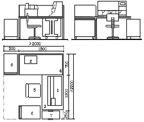| 1 - стол рабочий | 3 - стул подъемно-поворотный |