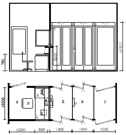| Г - запасной выход для экстренной эвакуации | 7 - светильник настенный |