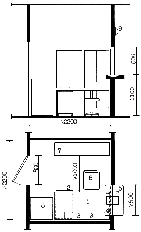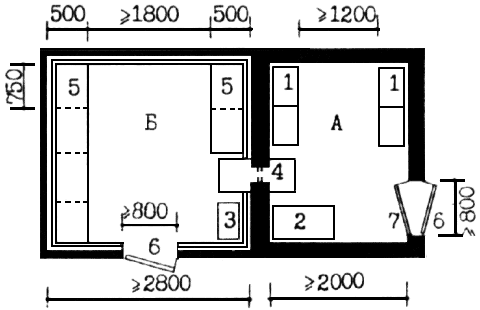 | 2 - стол подсобный | 7 - дверь металлическая решетчатая |