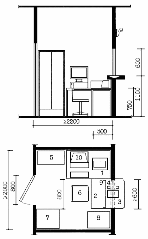 | 5 - шкаф металлический | 11 - светильник настенный |