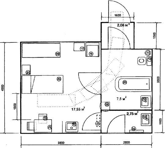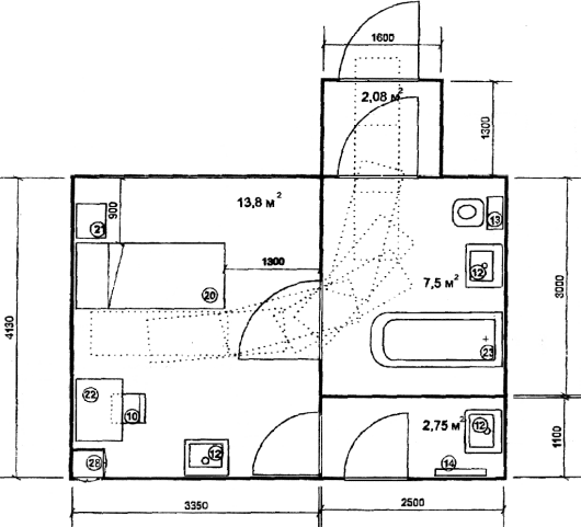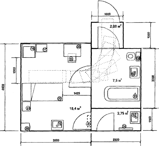 | 23. | Ванная | 1800 х 750 х 622 |