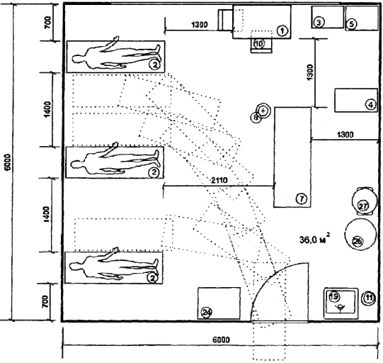 Рис. 3.5. Смотровая специализированная на 3 кушетки