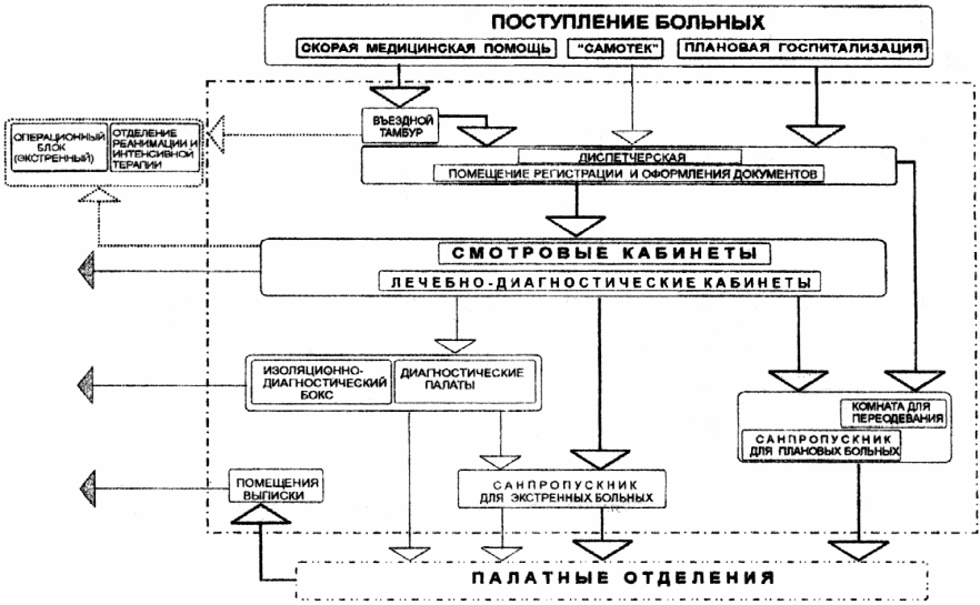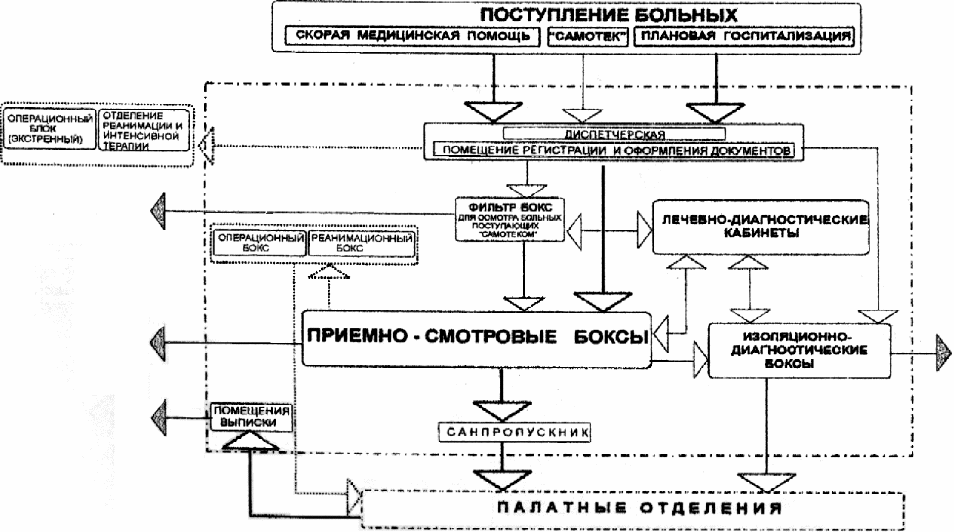 Схема взаимосвязи основных помещений приемных отделений неинфекционных больниц для взрослых