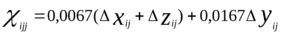 — расстояния в м между точками i и j по вертикали, в направлении ветра и по горизонтали перпендикулярно направлению ветра соответственно.
