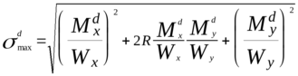 Пусть в результате расчета получены Мmx и Мmy — средние значения и Мdx и Мdy — максимальные отклонения изгибающих моментов. Среднее значение smmax , определяется по формуле