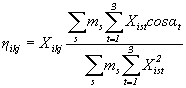 здесь Xist - проекции перемещений узлов s на три (t = 1, 2, 3) взаимно ортогональные направления при колебании по форме с номером i;
