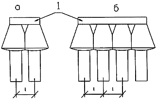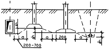 Расстояние "l" между осями двойных или ленточных фундаментов рекомендуется принимать равными: (1,5-2,0)bb при диаметре фундамента bф³ 1,25l, где bb - диаметр шейки фундамента.