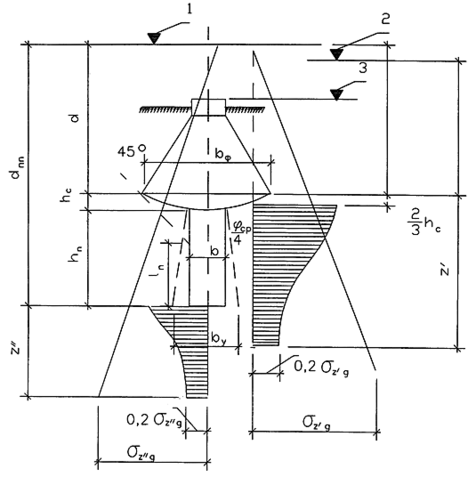 4.4.16. При бетонировании консольных конструкций фундаментов (под крыльца, низкие пристройки, у примыкания к существующим фундаментам и т.п.) необходимо обеспечивать предусмотренный проектом зазор между грунтом и опалубкой нижней грани консолей, но не менее 15 см.
