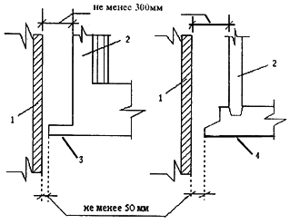 1 - существующее здание; 2 - новое здание; 3 - осадочный шов; 4 - вставка