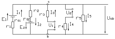 Пользуясь методом двух узлов можно произвести замену искомых параллельных ветвей, содержащих источники э.д.с., одной эквивалентной.