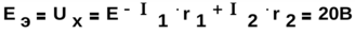 E1=40 B, E2=20 B, r01=r02=1 Oм, r1=9 Ом, r2=39 Ом, r3=10 Ом,