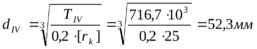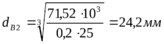 Диаметр выходного конца ведущего вала при []k=25H/мм2
