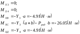 MY3=0; MY4=0; MYB=-X3∙a=-147.1(H∙м)