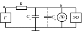 Исследуемый конденсатор Сх через сопротивление R подключен к источнику переменного напряжения – звуковому генератору Г (рис. 3). Напряжение, которое дает генератор, меняется по закону