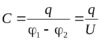 Емкость конденсатора определяется отношением заряда, перенесенного с одной обкладки на другую, к разности потенциалов, возникшей между ними: