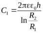 Емкость коаксиального кабеля рассчитывается по формуле емкости цилиндрического конденсатора (рис. 1)