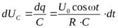 Так как конденсатор включен в цепь переменного тока, то его заряд в течение малого промежутка времени dt увеличивается на величину dq, где