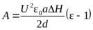 Состояние равновесия жидкости наступит, когда будет выполнено условие f = mg. Если выразить массу m втянутого столба жидкости через ее плотность и объем V = adh, то получим f = padhg. В этом выражении h – окончательная высота, на которую поднялась жидкость под действием поля при данном U (при выводе расчетной формулы под H подразумевалось малое приращение высоты). Подставив данное значение силы в формулу (8), найдем окончательное выражение для расчета диэлектрической проницаемости жидкости