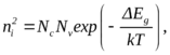 где Eg – ширина запрещенной зоны полупроводника; Nc,v – эффективные плотности состояний в зоне проводимости и валентной зоне полупроводника соответственно. Все указанные величины приводятся в справочных данных для полупроводникового материала. Температурная зависимость для Eg выражено очень слабо и ею при решении задач практически можно пренебречь; для Nc,v температурная зависимость может быть описана соотношением